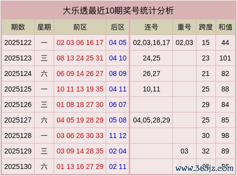 体彩大乐透近10期奖号数据统计表